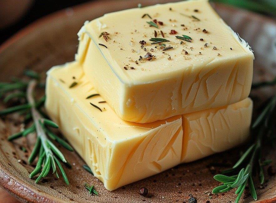 버터의 원료는 우유입니다. 이 사실을 잘 모르는 사람도 의외로 있습니다. 버터가 무엇인지 정의해 보면 버터는 우유에 포함되어 있는 유지방을 뽑아내서 농축시켜서 고체로 만든 것입니다. 버터뿐만 아니라 얼마 전에 소개한 생크림을 만들 때도 우유에서 유지방을 추출합니다. 버터와 생크림 모두 우유 속의 유지방을 뽑아서 만드는 것은 같습니다. 그러나 생크림은 버터에 비해 유지방의 비율이 적고 대신 수분의 양은 많습니다. 생크림은 유지방이 18% 이상이면 된다고 정해져 있는데 보통은 35%~45% 정도 유지방이 포함되어 있습니다. 생크림의 유지방 비율이 결코 적은 건 아니지만 그래도 구성성분의 반 정도는 수분으로 이루어져 있어 액체 상태로 존재합니다. 그에 비해 버터는 유지방이 대부분입니다. 버터 속의 유지방은 무려 80%가 넘어갑니다. 그에 비해 수분은 15% 전후이기 때문에 고체유지로서 형태를 유지합니다. 참고로 원재료인 우유는 대부분이 수분입니다. 우유성분의 거의 90% 가까이는 물입니다. 우유 속 유지방은 불과 3.8%에 불과합니다. 따라서 우유로 버터를 만들어서 유지방을 80%가 넘게 하려면 꽤나 많은 우유가 필요합니다. 이런 이유로 판매하는 버터의 가격은 아무래도 우유보다는 비쌀 수밖에 없습니다. 그렇다고 버터의 구성성분에 유지방과 물만 있는 것은 아닙니다. 비율이 아주 적지만 단백질과 당질도 있습니다. 이 성분들은 미량에 불과하지만 버터의 맛과 향을 결정하는 중요한 요소로 작용한다고 합니다.